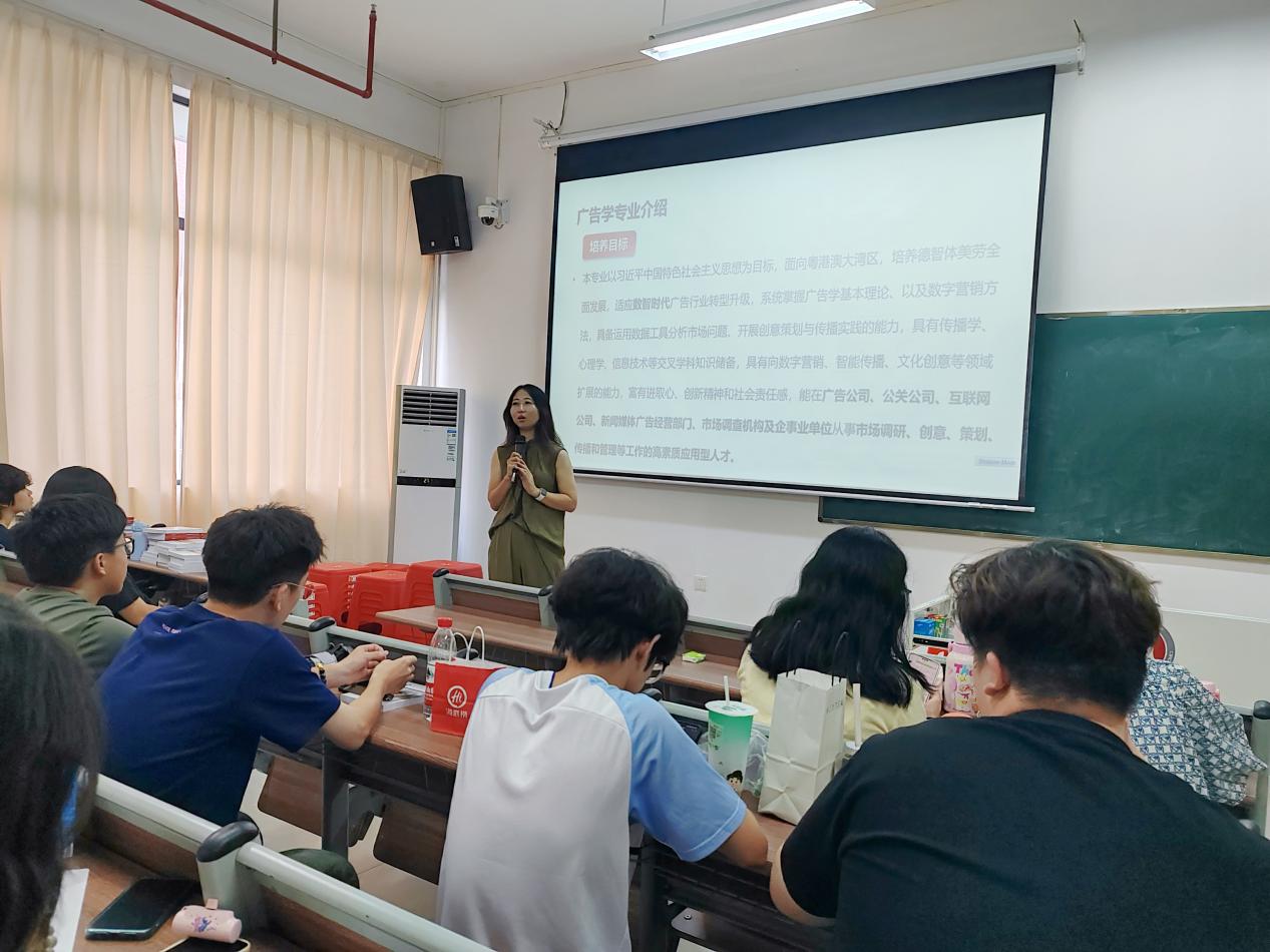 张潇珑老师聚焦“四年学习规划”,为新生提供了阶段性目标指引:大一阶段需夯实基础,学好《广告学概论》等核心课程,同时积极参与社团活动,锻炼沟通协作能力;大二要深入钻研专业知识,熟练掌握设计软件等工具,主动报名广告创意竞赛,积累实践经验;大三需聚焦行业实践,通过实习接触真实项目,拓宽行业视野;大四则要全力冲刺,兼顾毕业设计质量与求职准备,结合自身优势打造“出彩简历”,实现精准就业。