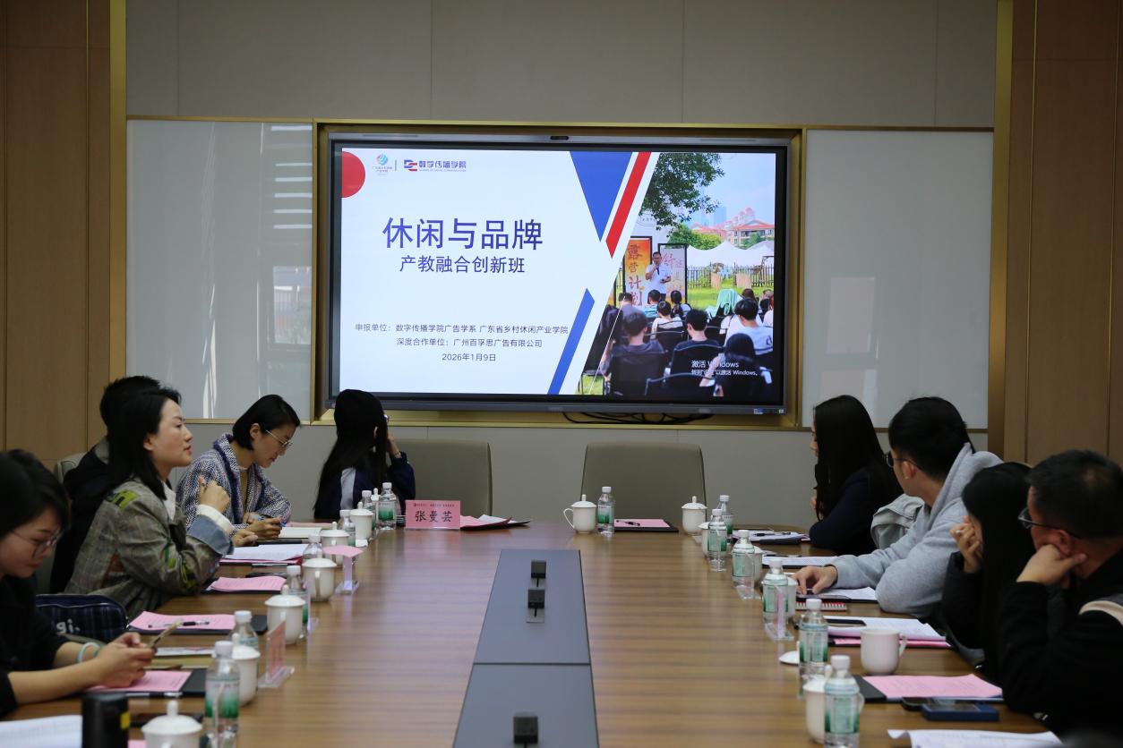 本次研讨会由张晋升院长主持。会上,谢俊陶主任详细介绍了创新班的建设规划、核心特色、课程体系及产教融合基础。该创新班由数字传播学院广告学专业与广东省乡村休闲产业学院联合申报,深度携手广州百孚思广告有限公司、广州乡村振兴控股集团等头部企业,以“产教深度融合、自创休闲品牌”为核心,聚焦粤港澳大湾区休闲产业人才需求,通过跨界融合、实景实战、双师协同的培养模式,打造兼具休闲产业认知、品牌策划能力及智能传播技术的复合型人才。